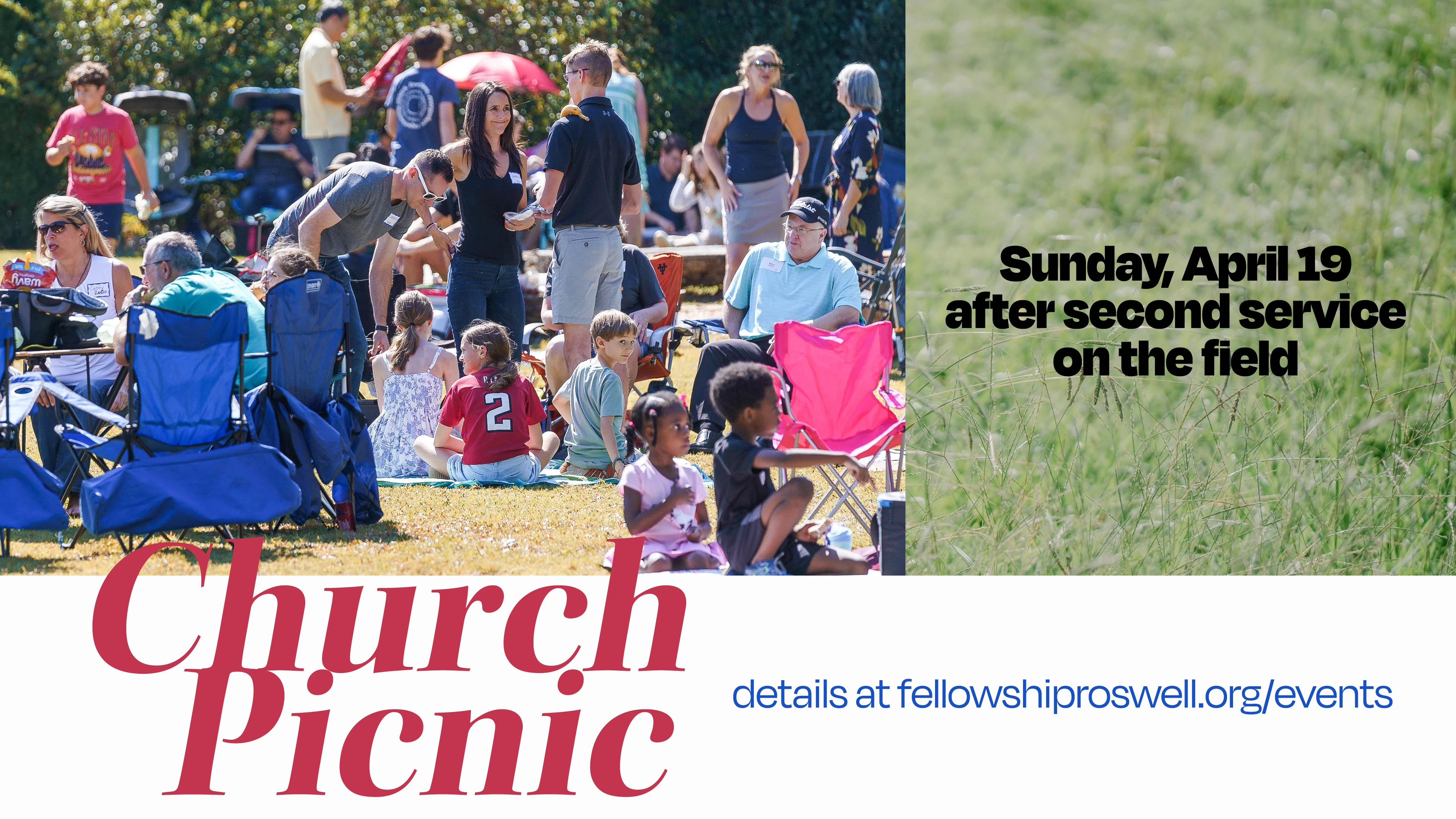 We're having a Church Picnic on the field immediately following second service on Sunday, April 19th until 2:00pm. Bring your own lunch, chairs, tents and lawn games, and we will provide the shaved ice, music and fun!