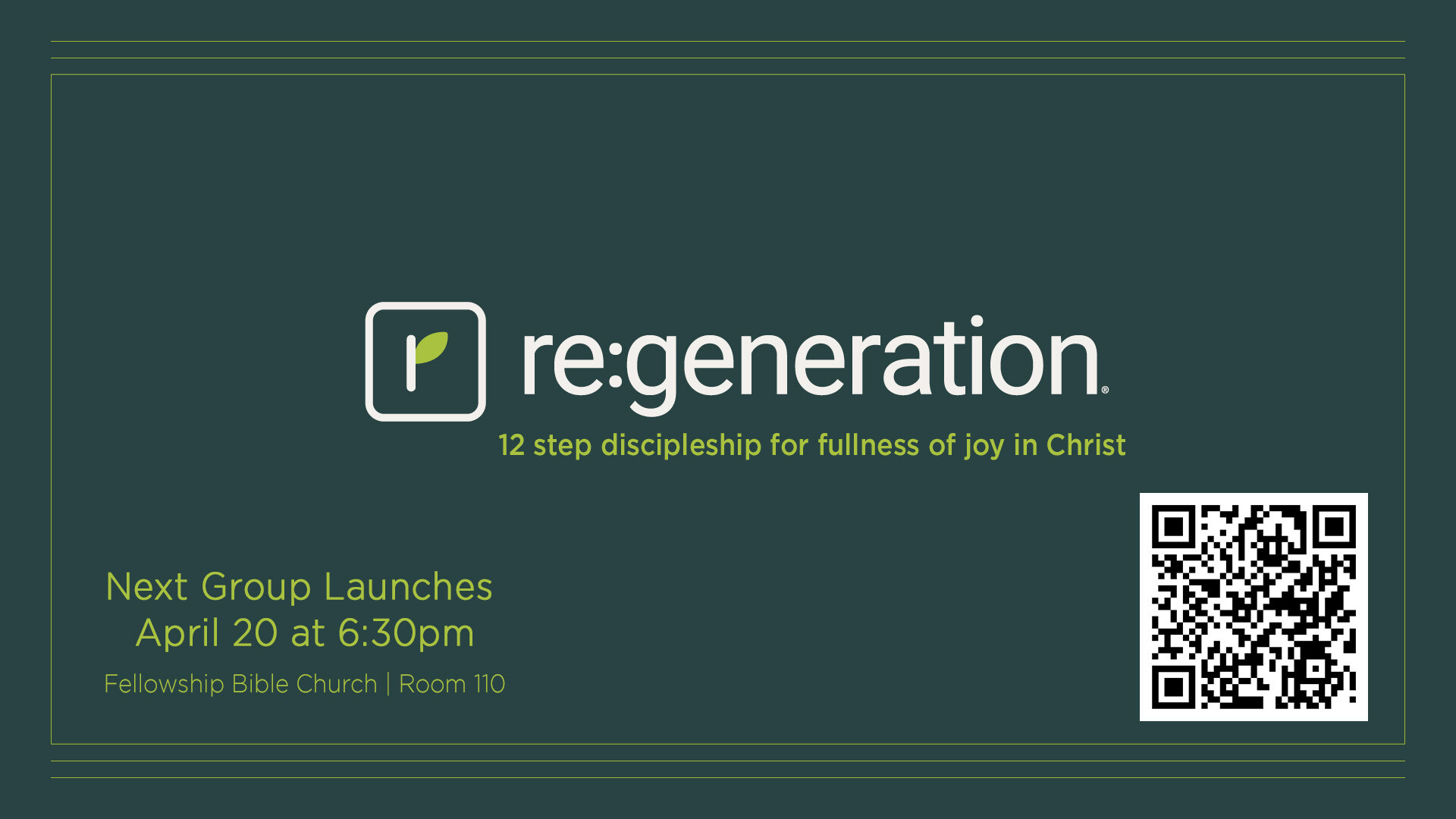Re:generation is launching a new group on April 20 at 6:30pm in room 110. Join us to find new freedom and fullness of joy in your walk with Jesus through this 10 month, 12 step discipleship journey. This is an inward journey where you can dive deep within authentic community to discover what is holding you back from experiencing the abundant life Jesus offers. Thousands of people have experienced healing and transformation through 12 step Biblical discipleship, and you could be one of them.